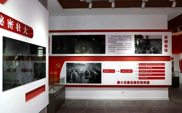 全馆以暴动为主题,不仅记载有魏县第一个党小组、第一个党支部、直隶七师薪火相传、成立甘礼会、组织武装革命暴动、新时期的建设等史实内容,也展示了蔡小庄暴动和党组织各个历史时期的文献资料和部分藏品物件,以飨世人。