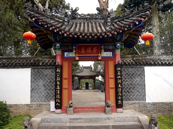 蔡伦墓祠分为南、北两部分,南为蔡侯祠,北为蔡伦墓。蔡侯祠坐北朝南,沿着中轴线修建,从南向北依次为山门、拜殿、献殿和正殿。在正殿的大门上,悬挂着唐德宗御书的“蔡侯祠”匾额,殿内供奉着蔡伦的塑像。除此之外,两侧还有钟楼、鼓楼、厢房、戏楼等古建筑。