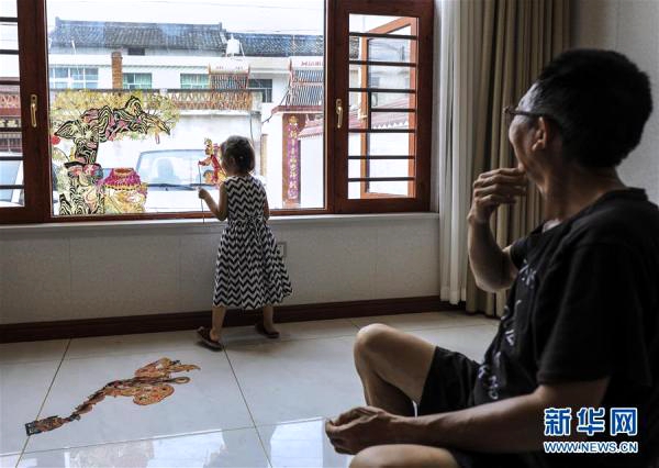 8月1日,皮影艺人蔡善存在家中与小孙女玩皮影。 陕西省汉中市洋县龙亭镇杜村的蔡善存,是当地有名的皮影老艺人,他出身皮影世家,吹、拉、弹、唱精通,特别精于皮影雕刻制作,是陕西省非遗传承人。蔡善存1979年组建了洋县龙亭杜村皮影剧社,多年来一直致力于皮影艺术的传承与开发。 皮影是一种传统民间艺术。洋县皮影艺人表演时的唱、白、吐字均以洋县方言为基础,自成体系,具有鲜明地方风格,被誉“汉水一绝”。